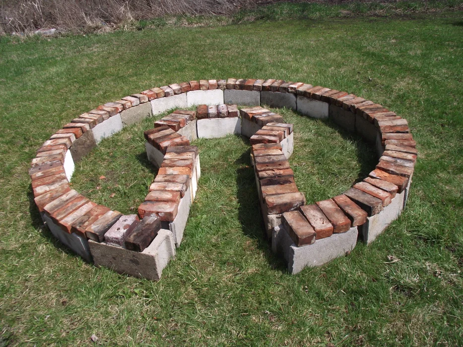 I wasn't sure how big I wanted to make this, but knowing that I only had a few cement blocks to work with, I decided to go somewhere around 7 or 8 feet. I put a stick in