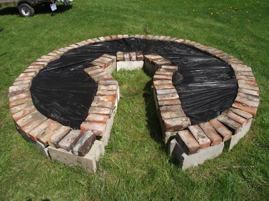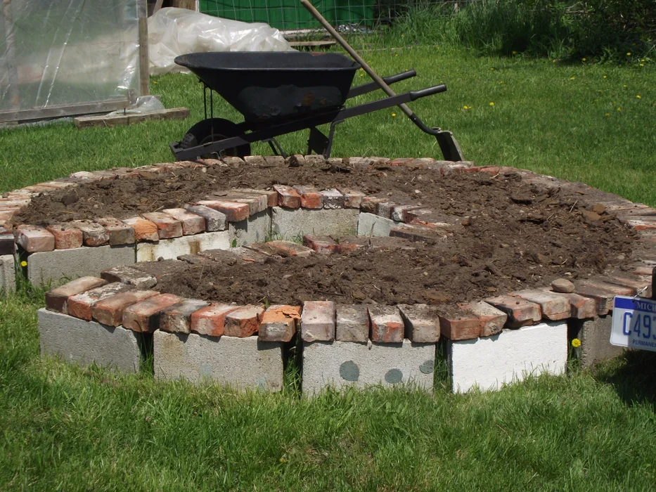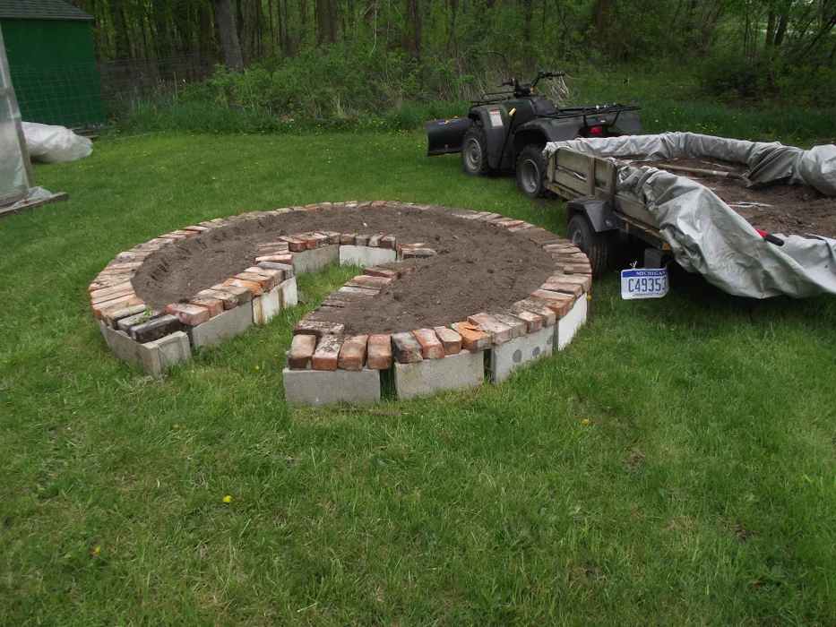 using reclaimed materials. I found a spot near my greenhouse that I was also building at the time that looked to be pretty level.