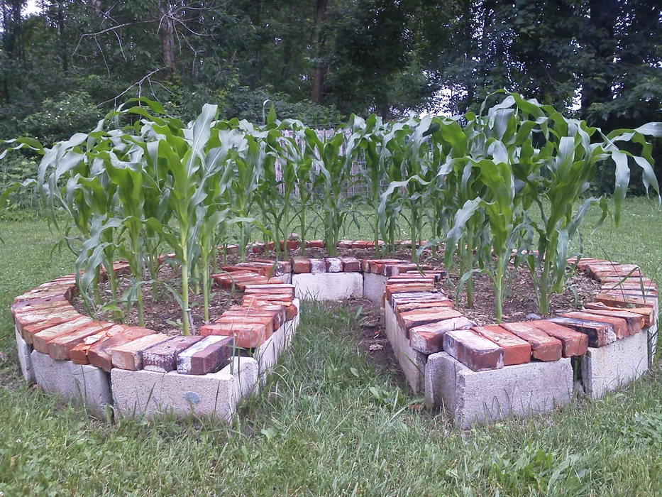 After digging up all the Hasta's the bed was ready for this years new tenants, Sweet corn! I started all of my seed in a small greenhouse that I put together this spring. I'm going to do an instructable on how I did that in the very near future. I had no problems whatsoever last year. Very little maintenance as far as weeds were concerned, by putting down a weed barrier along with some mulch, I really didn't have to do a whole lot except for the occasional weed that would pop up through were the hole was for the plant, and really just watered about once or twice a week lightly just to keep the soil from drying out. Also I didn't have any real issues with grass or weeds coming up in and around the cinder blocks, what little that did manage to the weed whacker took care of that easily. I'll post pics throughout the growing season so we can see how the sweet corn does this summer.